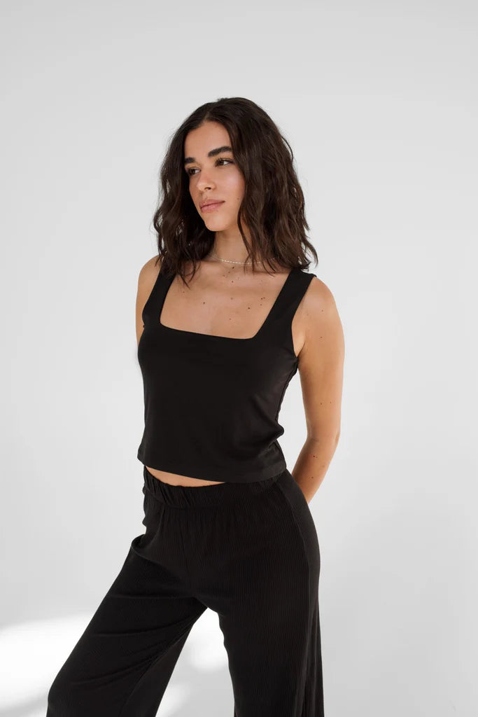 La coupe : Cette camisole à encolure carrée est confectionnée dans un tissu ultra-doux, entièrement doublé, qui offre un confort incomparable. Sa coupe arrive au niveau du nombril et ses larges bretelles apportent une touche moderne. Idéal pour un look à la fois simple et élégant, ce haut se porte seul ou sous une veste.