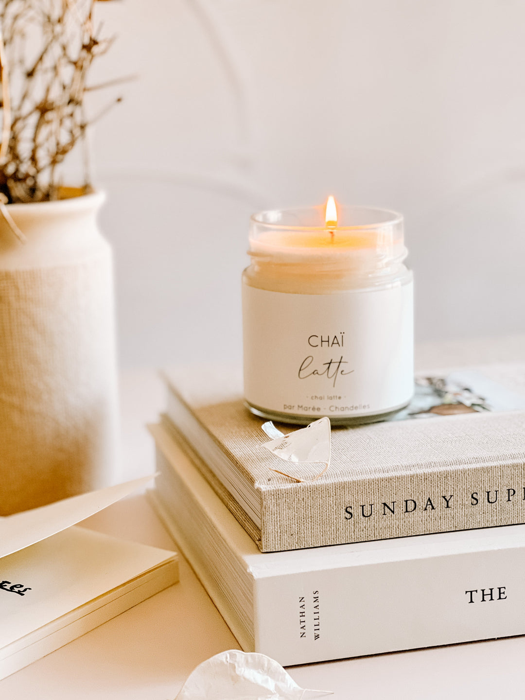 Cette chandelle de cire de soya est parfaite pour les amateurs de réconfort et de cocooning. Avec ses notes de noix de muscade et de cannelle, de thé blanc crémeux et de vanille, cette bougie vous enveloppera par son odeur chaleureuse.