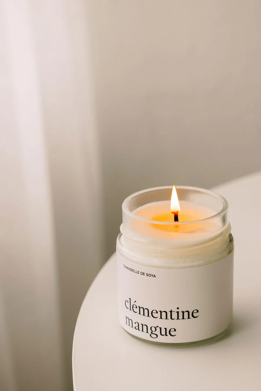 Cette bougie de soya révèle également des notes de mimosa lumineux et de jasmin délicat.