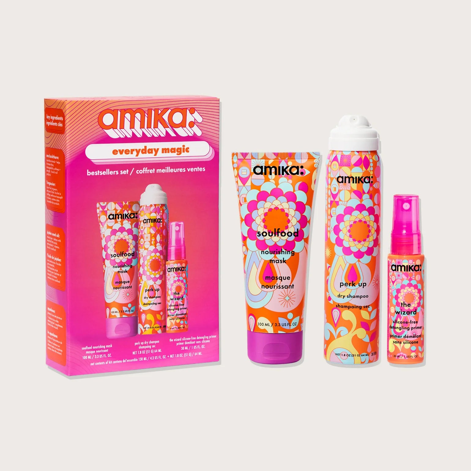 Prête pour des minis magiques ? Offrez à vos cheveux un trio de minis best-sellers qui nourrissent et revitalisent pour des cheveux doux, brillants et plus forts. Ce coffret magique quotidien comprend le masque nourrissant Soulfood, le shampoing sec The Wizard et le spray démêlant sans silicone The Wizard. C'est l'heure de la magie miniature ! Ce coffret cadeau en édition limitée regorge de best-sellers pour nourrir, démêler et rafraîchir les cheveux, pour un avant-goût des formules préférées de tous, en format voyage.