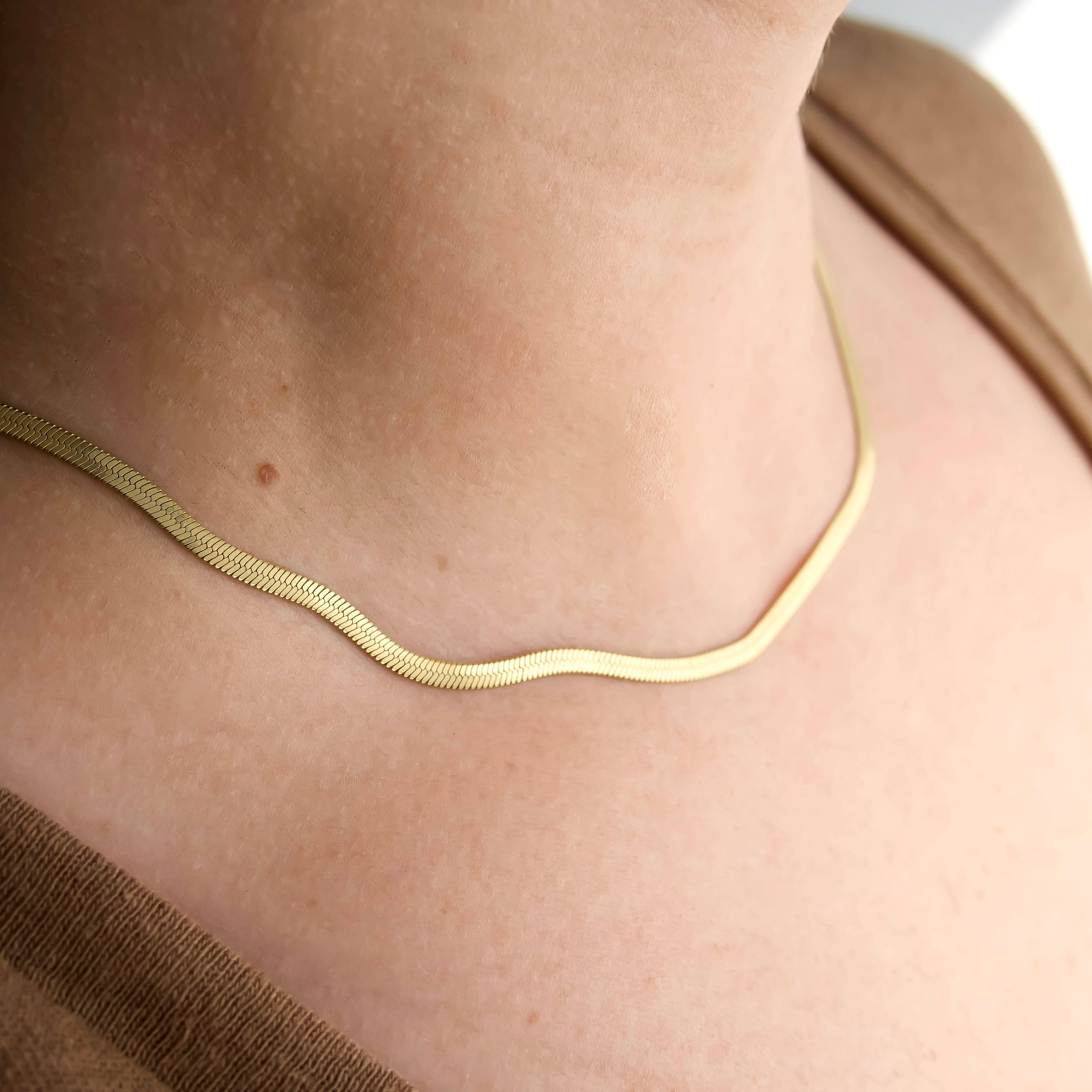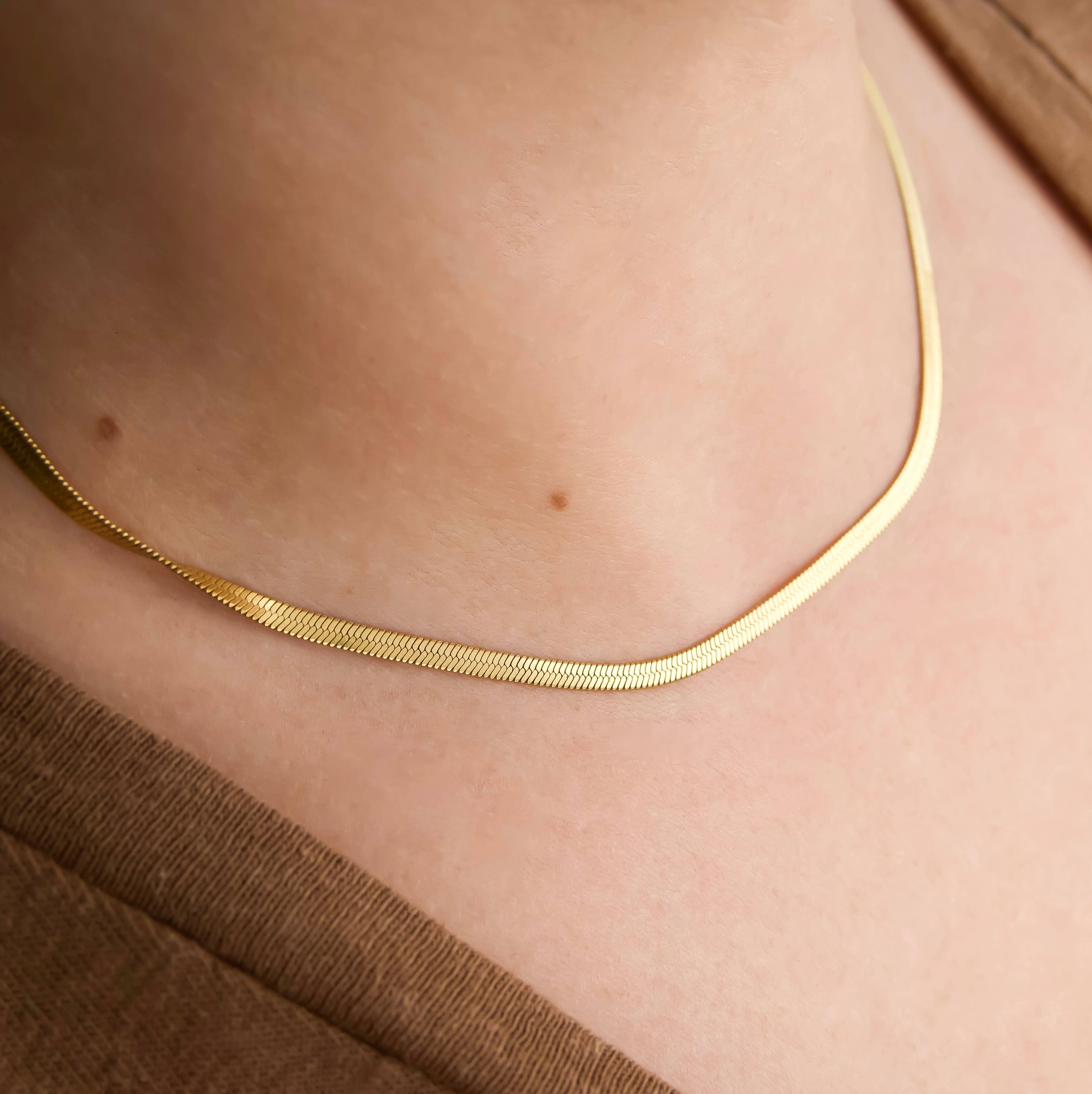Style de chaîne intemporel et sophistiqué, ce simple collier ras du cou à chevrons en acier inoxydable est la pièce parfaite à ajouter à votre collection. Il capte parfaitement la lumière et possède un look moderne et élégant.