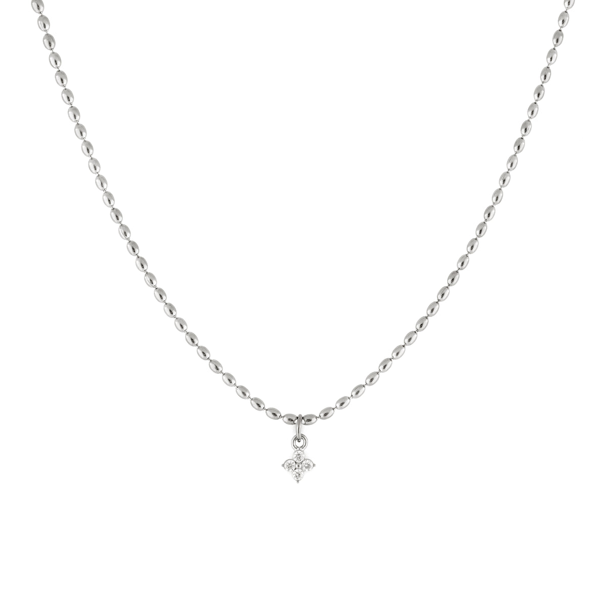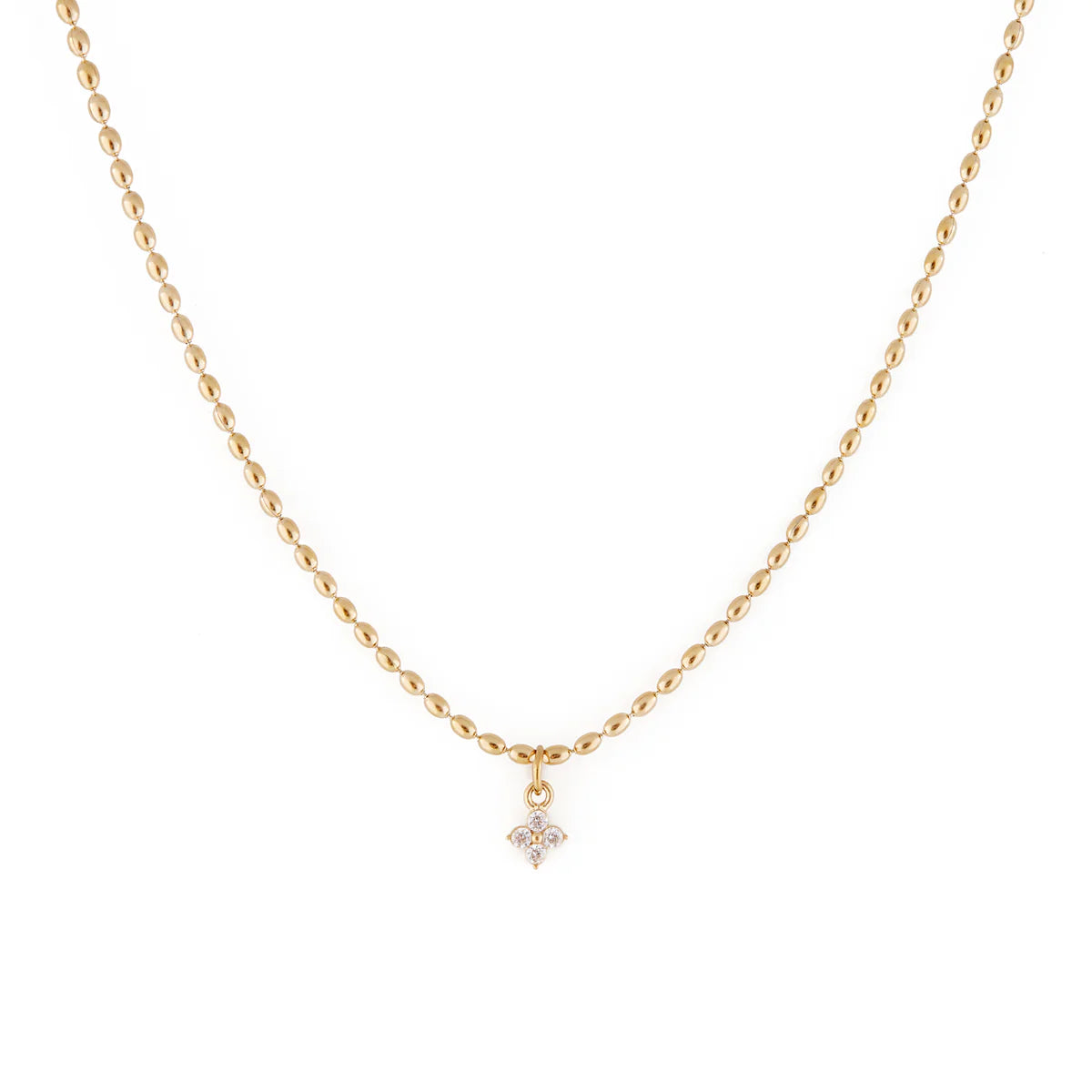Ce collier au style unique est composé de délicates billes de forme ovale et d'un pendentif en fleur rehaussé de zircons cubiques offrant un look étincelant qui ne manquera pas d'attirer les regards.