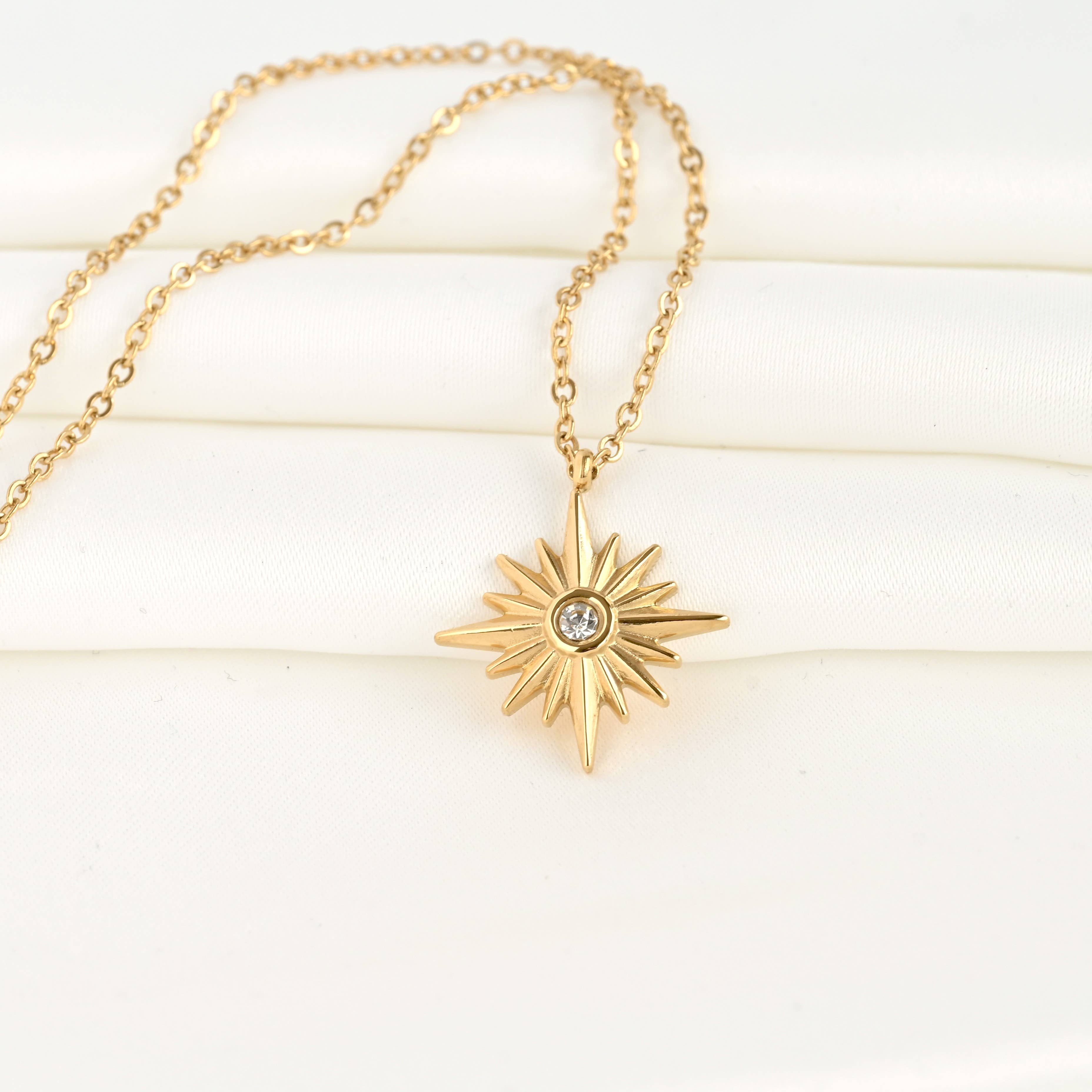 Ce délicat pendentif en forme d'étoile polaire est conçu pour mettre en valeur votre beauté. Fabriqué en acier inoxydable hautement poli avec finition satinée, le design comprend une breloque en forme d'étoile avec une petite pièce centrale en zircone cubique, le long d'une chaîne métallique délicate de 17,5 pouces sécurisée par un fermoir mousqueton. De plus, il est imperméable et résistant au ternissement. Ça ne verdira pas ta peau ! Longueur : 17,5 pouces Matériau : acier inoxydable Taille de la breloque : 20 mm