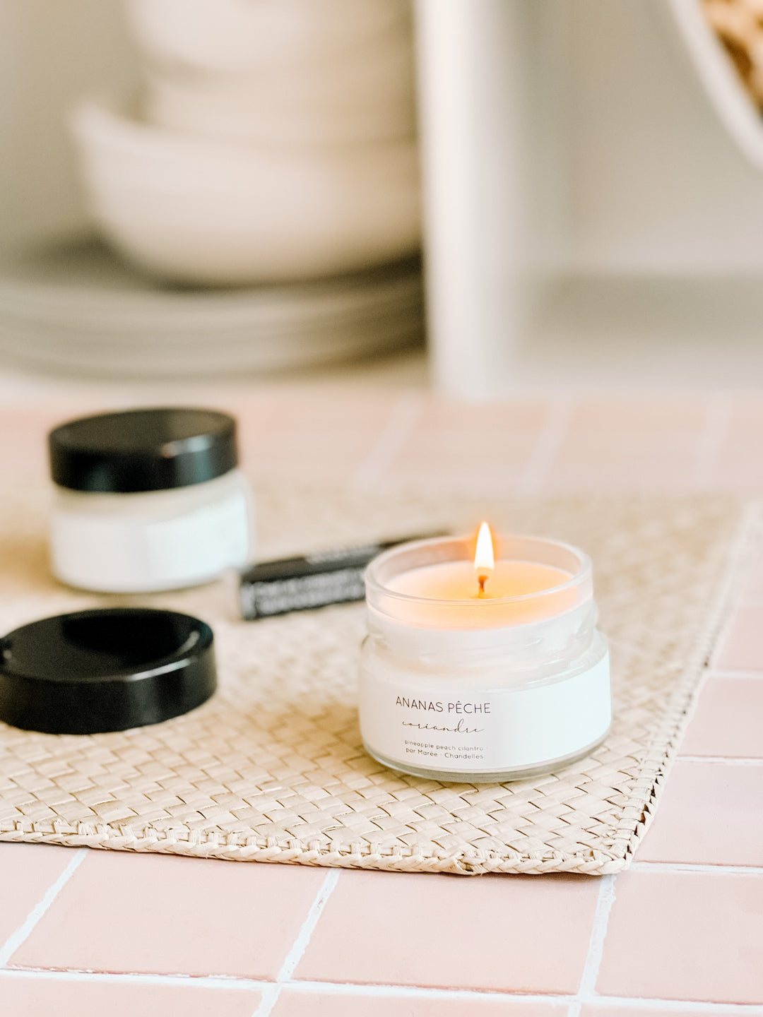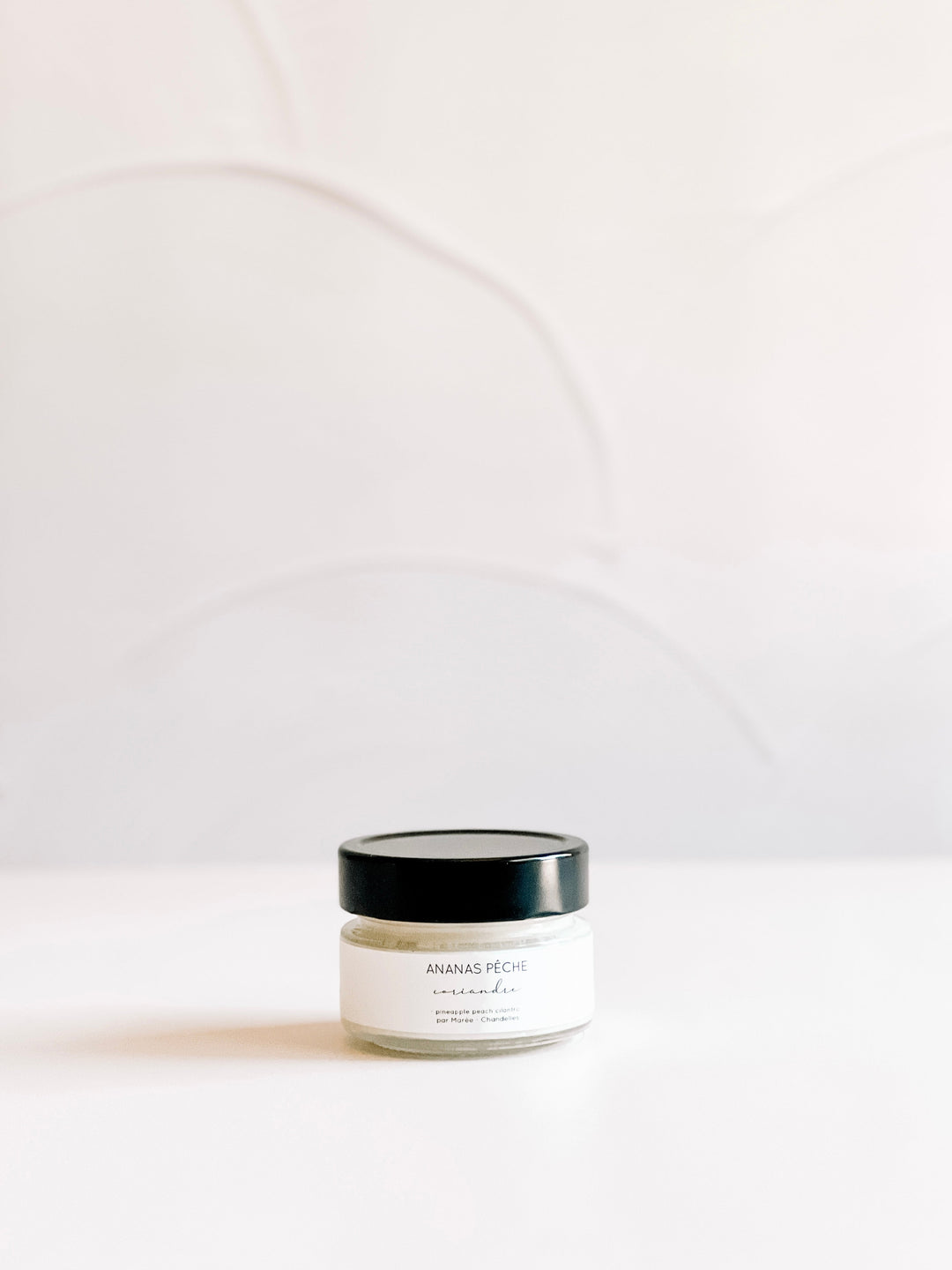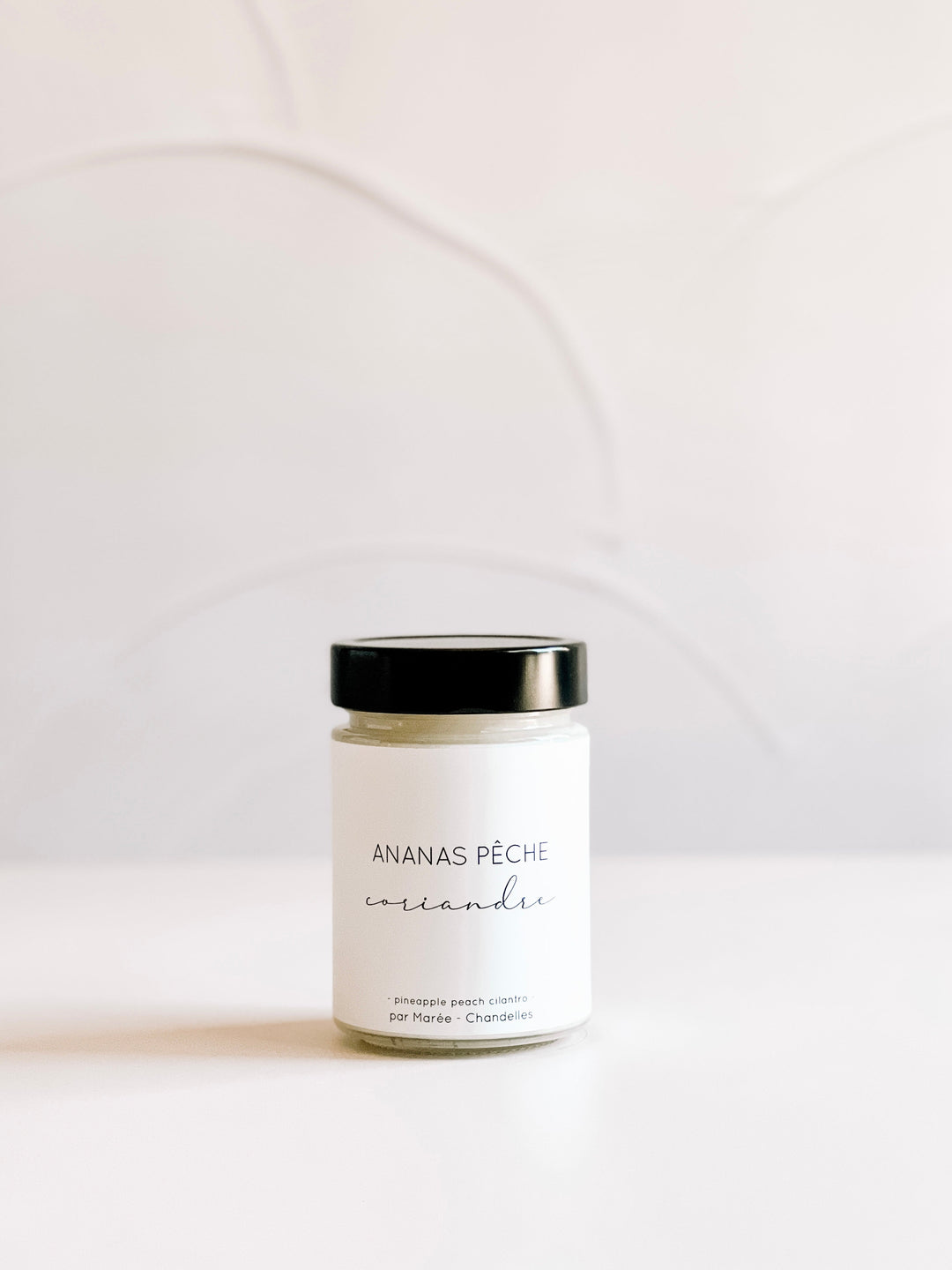 La chandelle de soya Ananas, pêche et coriandre combine merveilleusement l'ananas juteux, la pêche soyeuse et la fraîcheur de la coriandre. Cette bougie parfaitement fruitée crée un mariage enivrant qui parfume les pièces de notes sucrées et herbacées.