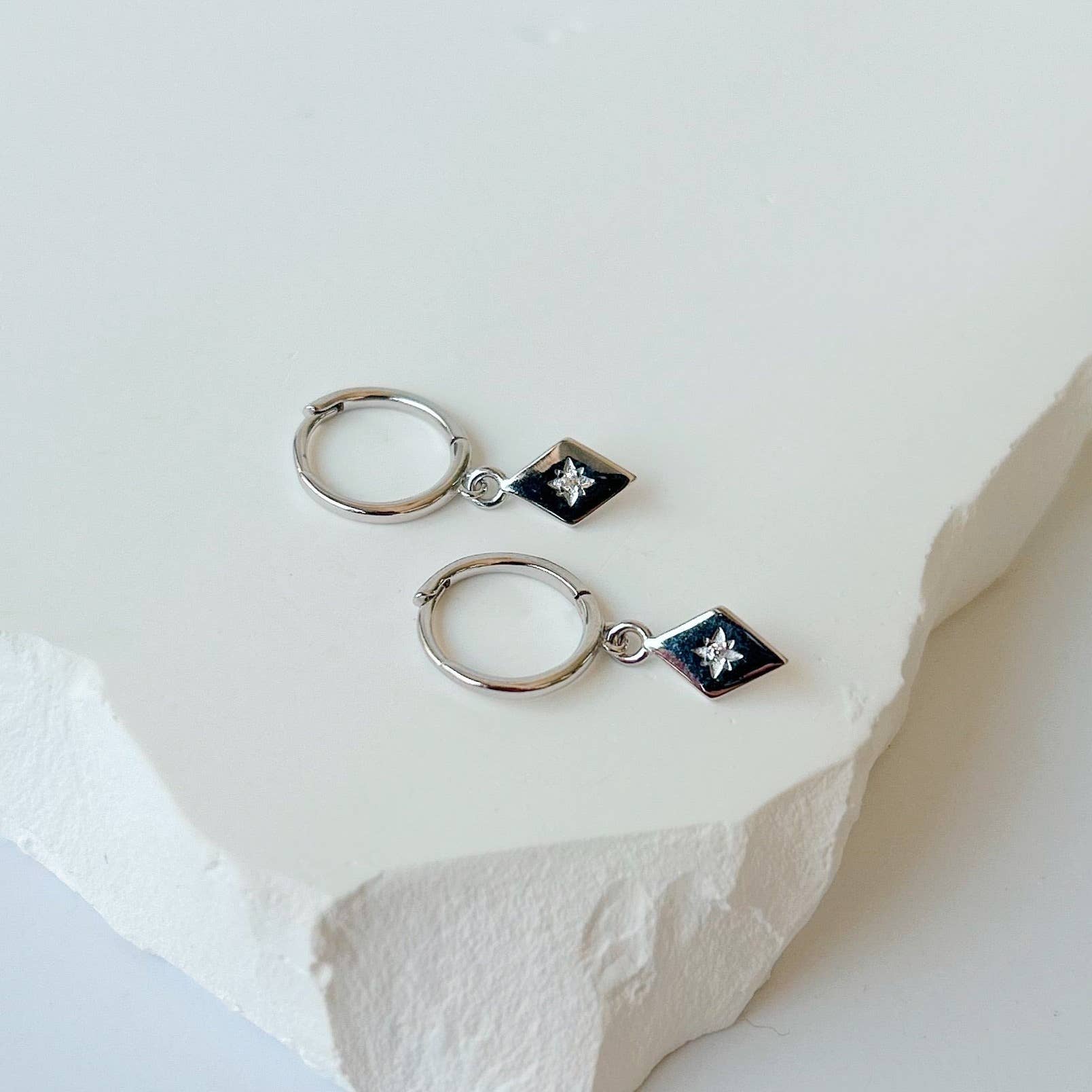 Boucles d'oreilles délicates avec pendentif en diamant et petit zircon incrusté.