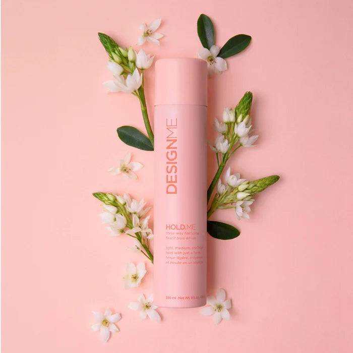 Renseignements : Le fixatif Hold.Me offre trois niveaux de tenue en un seul contenant: légère, moyenne et forte.