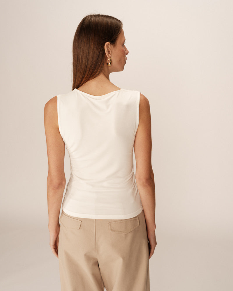 Féminin et sophistiqué, le top sans manches PURE dessine une silhouette moderne et intemporelle. Les fronces aux épaules et à la taille dévoilent un jeu de drapés sophistiqués et offrent du mouvement à la silhouette. Les détails, tels que, la coupe ajustée et l'encolure croisée, font du top drapé PURE un modèle aux lignes élégantes et épurées. Confectionnée dans un tissu en modal, cette pièce incarne l'élégance et le confort pour sublimer chaque femme.