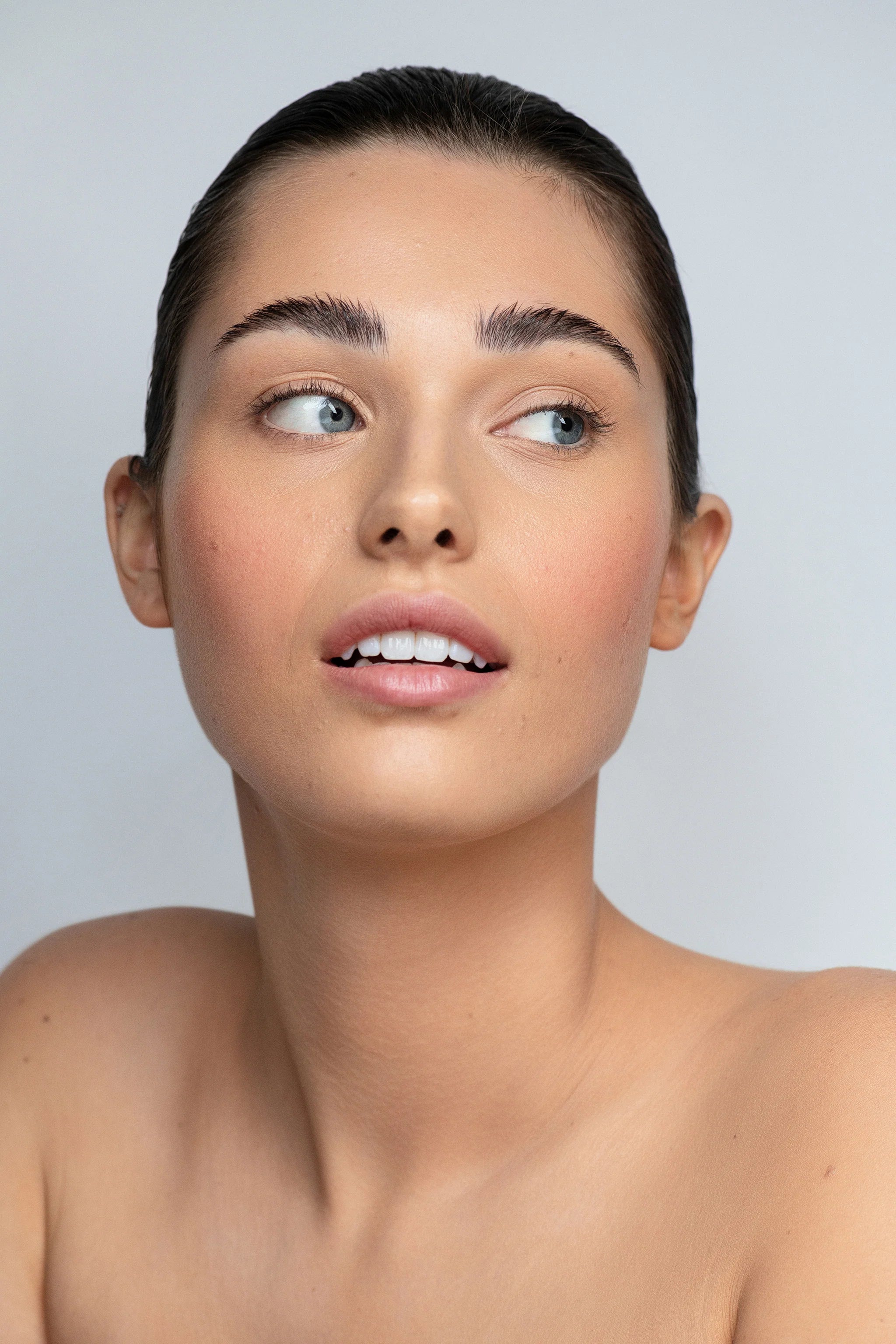 À l’aide d’un pinceau, appliquez le fard à joues sur les pommettes. Utilisez la poudre claire pour appliquer aux points de lumière souhaités sur le visage ou le cou.