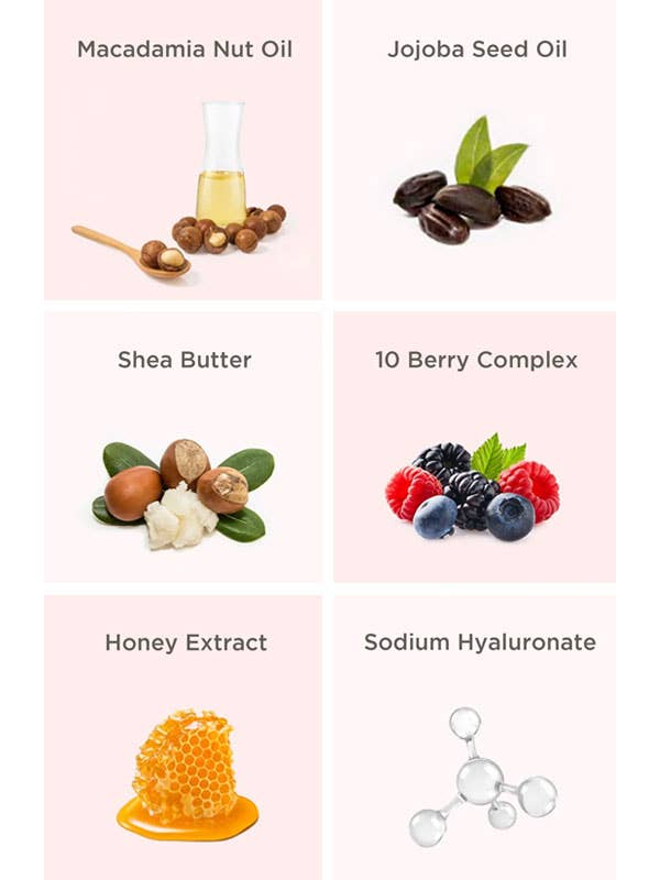 • Huiles nourrissantes : Contient des huiles nourrissantes comme la Noix de Macadamia, la Graine de Jojoba et le Camellia Sinensis, qui contribuent à ses effets hydratants profonds.