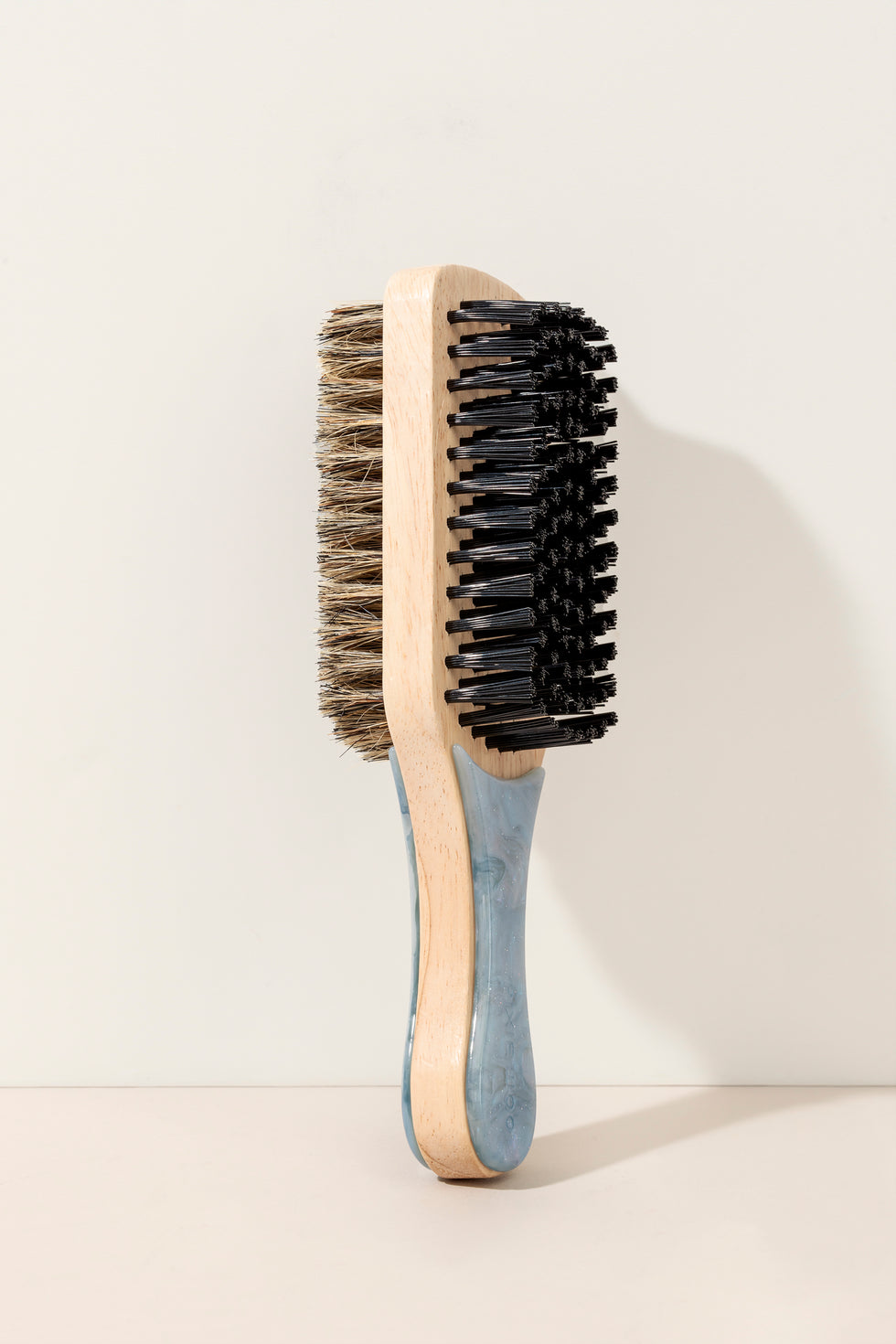 Réalisez un look lissé parfait avec cette mini brosse double face écologique, fabriquée en bambou durable. Un côté est doté de poils de sanglier fermes pour lisser les cheveux rebelles et répartir uniformément les huiles naturelles pour un fini impeccable et sans frisottis. L'autre côté offre un contrôle précis grâce à son peigne fin, idéal pour séparer les cheveux, modeler les cheveux courts et affiner les contours. Légère, durable et douce pour le cuir chevelu, cette brosse est idéale pour un coiffage sans effort et un toucher naturel.