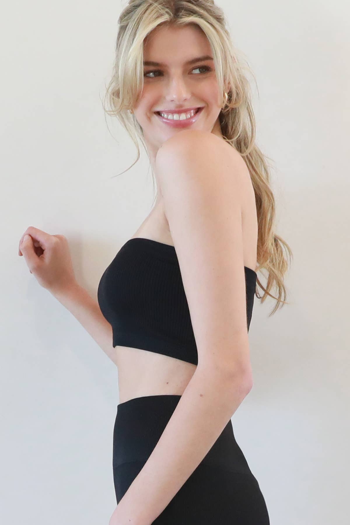 Haut de soutien-gorge bandeau basique en jersey côtelé.