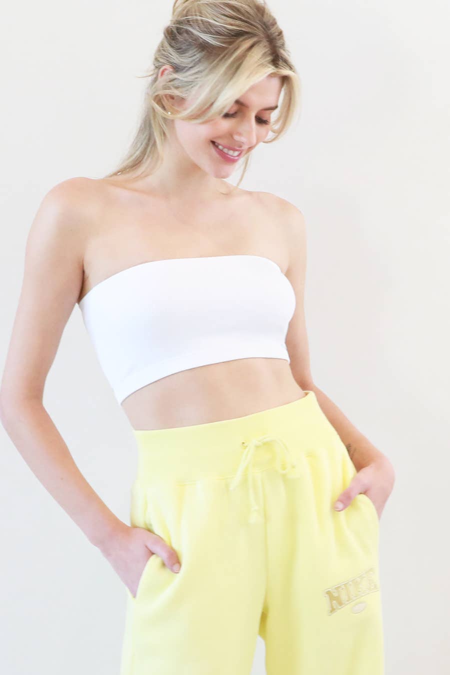 Haut de soutien-gorge bandeau basique en jersey côtelé.