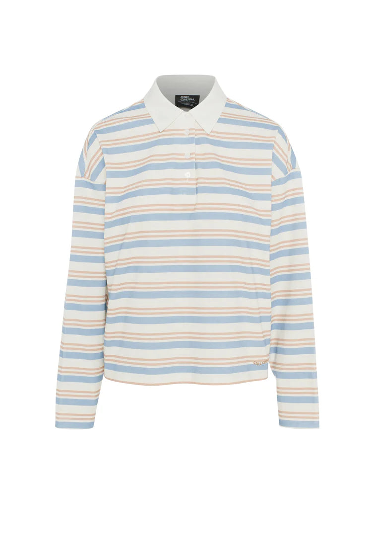Le Polo Preppy ramène l’esprit des après-midis passés à flâner entre amis, entre cafés d’étudiants et terrains de sport improvisés. Ses rayures bleu pâle, crème et chocolat lui donnent un charme vintage, comme une photo d’album qu’on aime revoir encore et encore. Avec son col contrastant et sa coupe décontractée, il combine élégance décontractée et confort du quotidien. C’est la pièce parfaite pour donner une touche old-school à tes looks de tous les jours.
