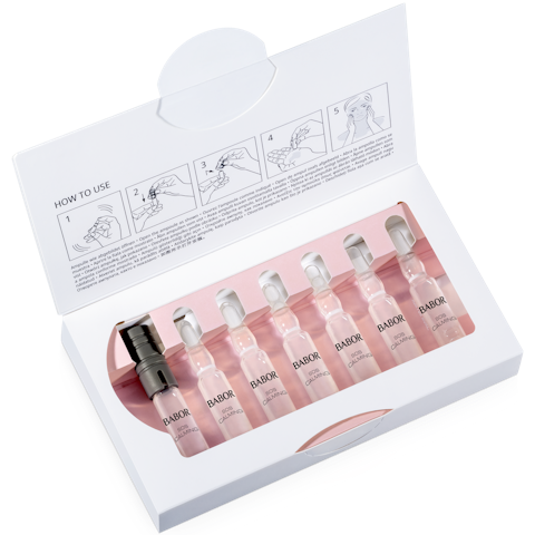 Utilisation : Après nettoyage de la peau à l’aide des produits de la gamme BABOR CLEANSING. Agitez le concen- tré et recouvrez le col de l’ampoule avec un mouchoir en papier ou l’ouvre-ampoule fourni. Avec votre main libre, saisissez l’ampoule au niveau du col ou l’ouvre-ampoule et cassez-la d’un mouvement sec au niveau de l’anneau coloré inférieur. Versez le concentré dans la paume de votre main puis appliquez-le sur le visage, cou et décolleté. Tapotez légèrement la peau pour le faire pénétrer. Utilisez ensuite une crème de soin.