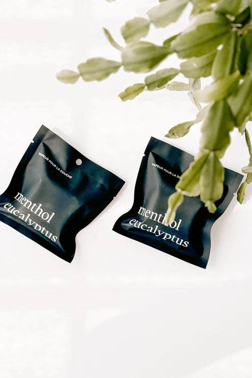 Rehaussez votre routine quotidienne de douche avec nos vapeurs de douche aux huiles essentielles de menthe et d'eucalyptus. Fabriquées au Québec, ces vapeurs transformeront votre salle de bain en un havre de paix et de détente. Vous n'avez qu'à placer la vapeur dans un coin de la douche et laisser le produit s'activer au contact de quelques gouttelettes d'eau. C'est grâce à la buée produite par la chaleur que vous bénéficierez de ses bienfaits.